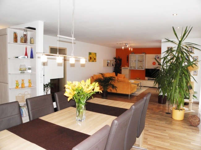 Der Wohn- und Essbereich wird mit bodentiefen Fensterflächen und Süd-Westausrichtung vom Licht durchflutet und lässt keine Wünsche offen. Neben den stilvollen Wand- und Bodenbelägen, einer voll ausgestatten Küche erwartet Sie hier noch das Highlight eines verglasten Kamin´s, welcher auch an kühlen Tagen für eine wohlige und ganz besondere Atmospähre sorgt.