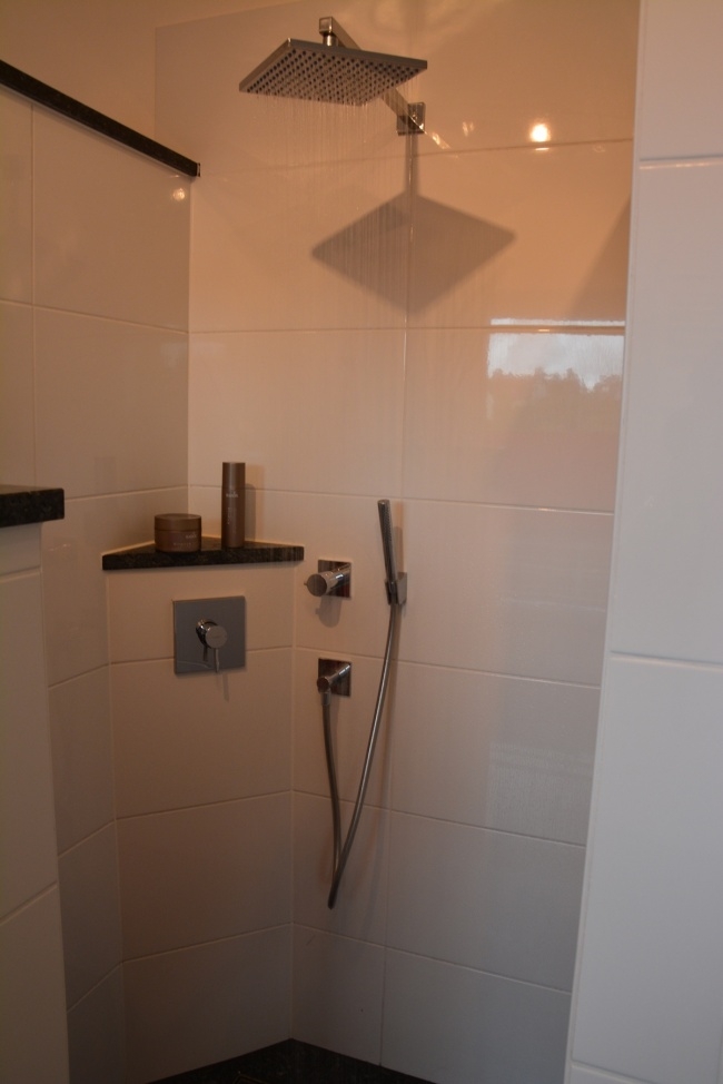 Das Bad mit großer, bodengleicher Dusche und exklusiver Ausstattung lässt keine Wünsche offen.