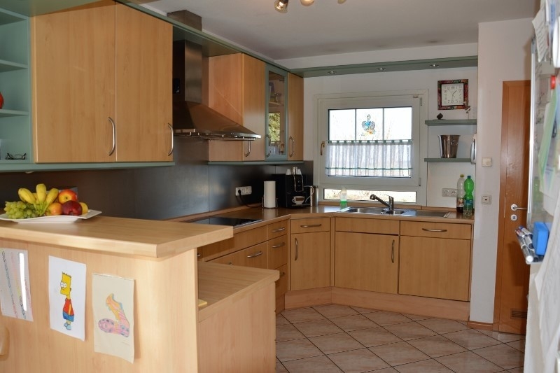 Der freundliche Essbereich lädt zu einem gemütlichen Miteinander Ihrer ganzen Familie ein. Angrenzend befindet sich die helle Einbauküche mit viel Staufläche und einer separaten Speisekammer.