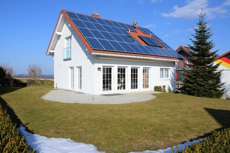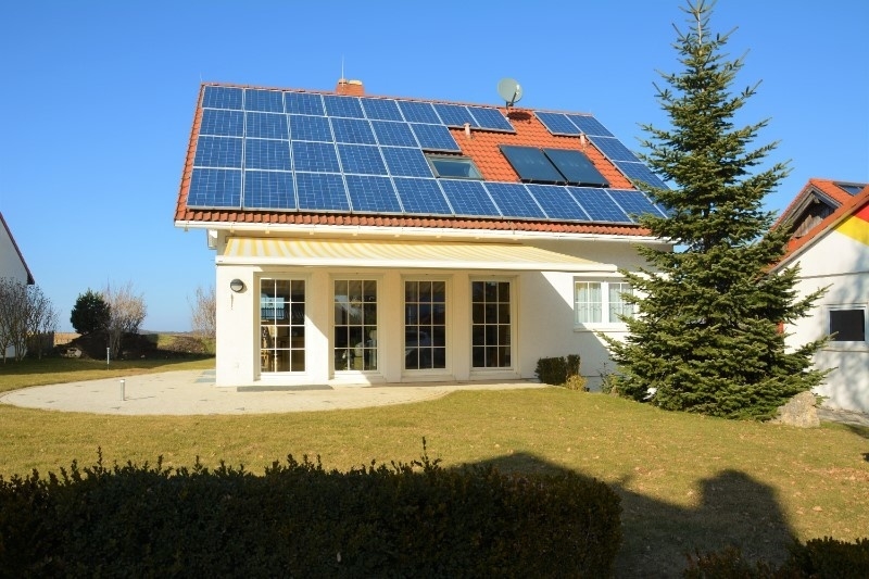 Auf dem Dach befindet sich eine Solar-Anlage für die Warmwasser-Aufbereitung, sowie eine Photovoltaik-Anlage für die Strom-Erzeugung.