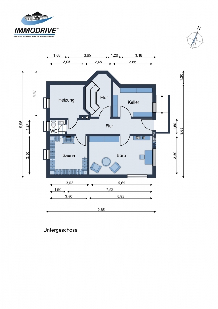 Im Untergeschoss haben Sie weiteren Platz für ältere Kinder oder für Ihr Büro. Entweder gelangen Sie durch die Treppe im Haus ins Untergeschoss oder durch den separaten Eingang. Hier erwartet Sie neben einem großzügigem Büro ein weiterer ausgebautes Zimmer. Beides mit Tageslicht.
