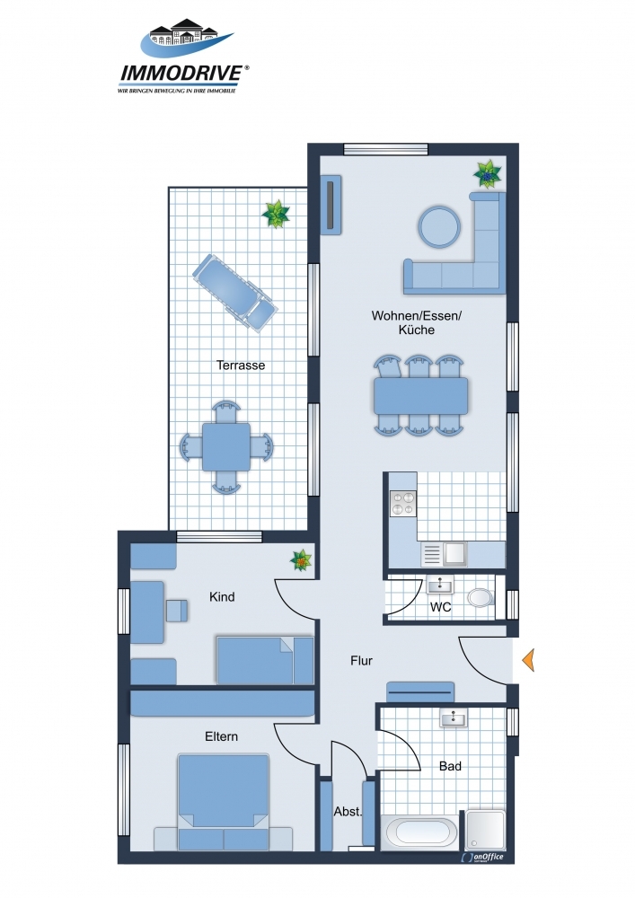 Das Highlight ist die großzügige, ringsum den Wohnbereich einschließende Dachterrasse, das verspricht Ihnen Sonne satt.