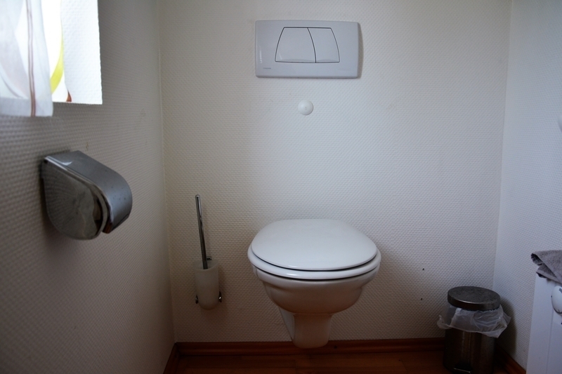 Das WC befindet sich auf halber Ebene.