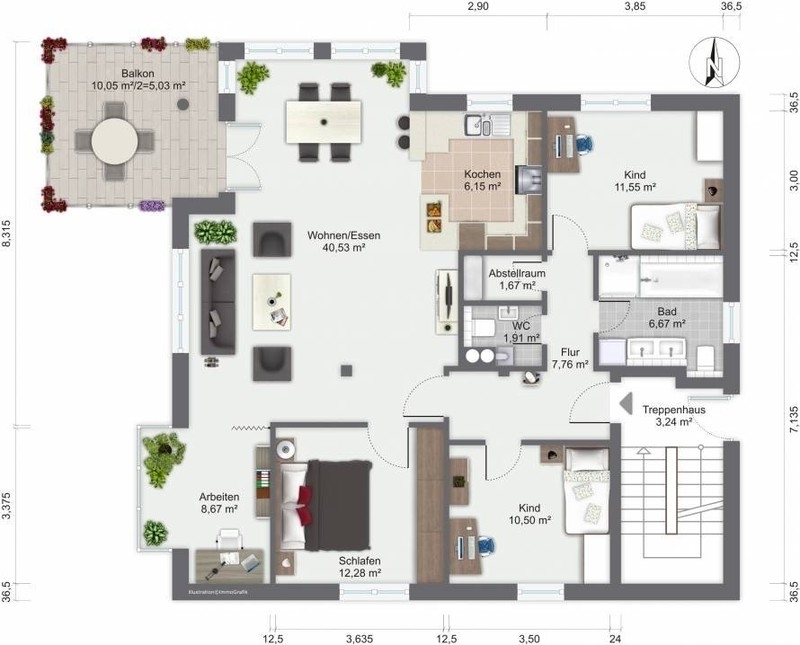 Verträge für Strom, Wasser und Heizung werden direkt mit den Versorgern abgeschlossen. EnergieausweisArt: BedarfsausweisEndenergiebedarf: 56.00 kWh/(m²*a)