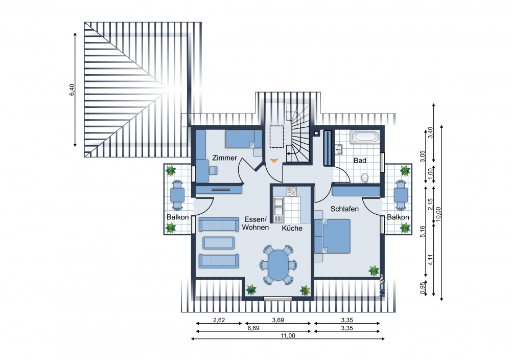 Diese helle und freundliche Dachgeschoss-Wohnung mit 75,00 m² Wohnfläche und 2 Balkonen befindet sich in einem 3-Familien-Haus.