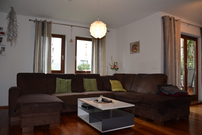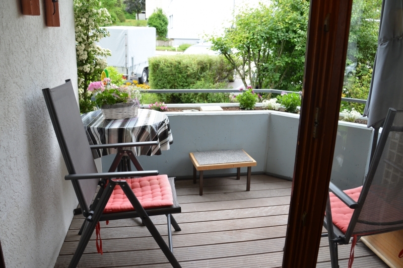 Vom Wohnzimmer aus gelangen Sie auf den eingewachsenen Eckbalkon, auf dem Sie ihre Sonnenstunden in aller Ruhe genießen können.