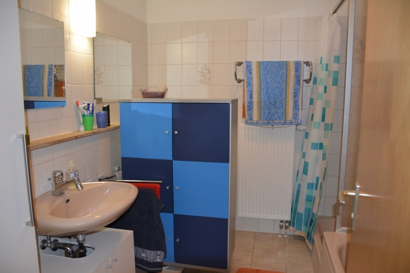 Dazu kommen noch ein innenliegendes Bad mit Wanne, Dusche und 2 Waschbecken, zudem ein separates WC.