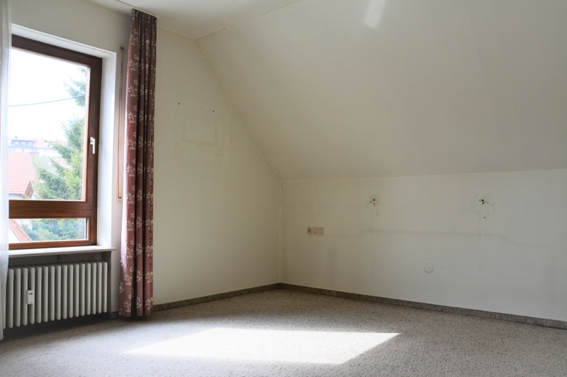 Diese Dachgeschoss Wohnung eines 3 Familienhauses verfügt über einen großzügigen, lichtdurchfluteten Vorflur im Treppenhaus. Treten Sie ein und gelangen Sie direkt in das helle Wohnzimmer. Von hier aus haben Sie Zutritt zu einem großen Balkon mit herrlicher Aussicht. Die restlichen Zimmer gehen alle samt vom Flur ab. In der Küche kann die vorhandene Einbauküche gern übernommen werden. Im Flurbereich befindet sich zudem ein Einbauschrank und im Wohnzimmer ein eingebautes Regalsystem.