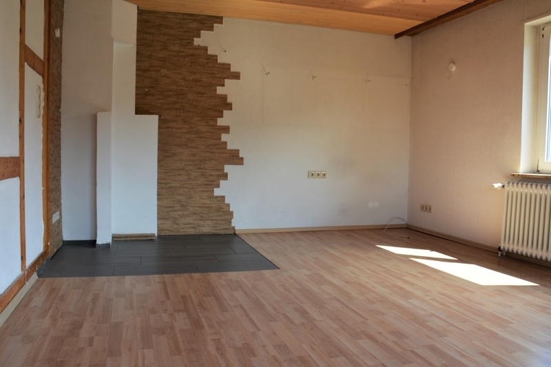 Das geräumige, helle Wohnzimmer geht direkt vom Esszimmer ab und bietet Ihnen die Möglichkeit einen Ofen anzuschließen.