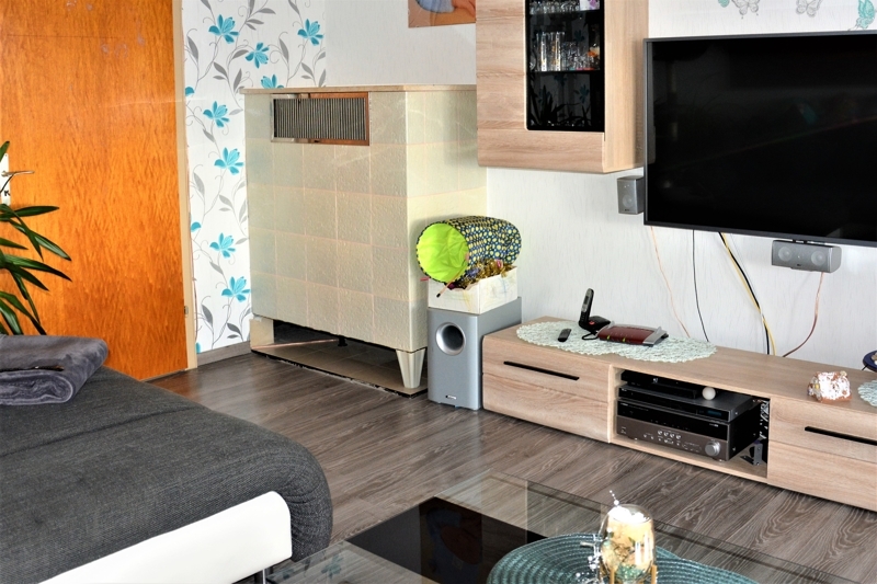Die Wohnung bietet 2 Schlafzimmer, wovon sich eines auch ideal als Büro oder Gästezimmer nutzen lässt. Die Zimmer gehen alle samt vom Flur ab. Das Badezimmer ist mit einer Dusche und einer Badewanne ausgestattet. Gleich nebenan, im vorderen Eingangsbereich befindet sich das WC. Die vorhandene Einbauküche kann gern vom Vormieter übernommen werden. Das geräumige, helle Wohnzimmer mit Ofen liegt neben der Küche. Hier haben Sie Zugang zum Südbalkon und können die herliche Aussicht mit Sonnenstunden genießen.