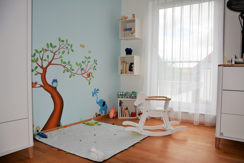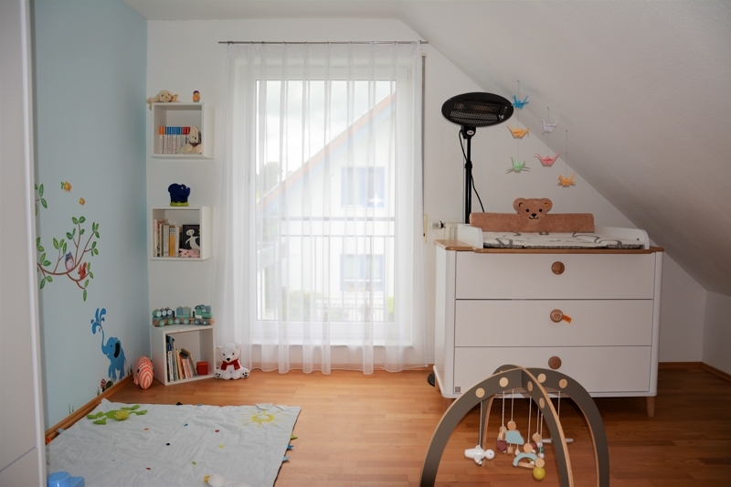 Im Dachgeschoss fühlt sich vor allem die Familie mit kleinen Kindern wohl. Hier schlafen alle auf einer Ebene. Drei Schlafzimmer, eins davon mit Zugang zum West-Balkon, bieten hierfür den nötigen Platz. Vervollständigt wird der Schlafbereich im Dachgeschoss mit einem großen Familienbad.