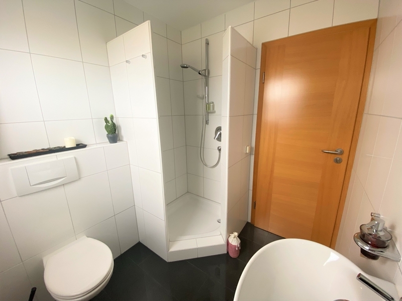 - Tageslichtbad mit Dusche, Doppelwaschbecken und WC im EG