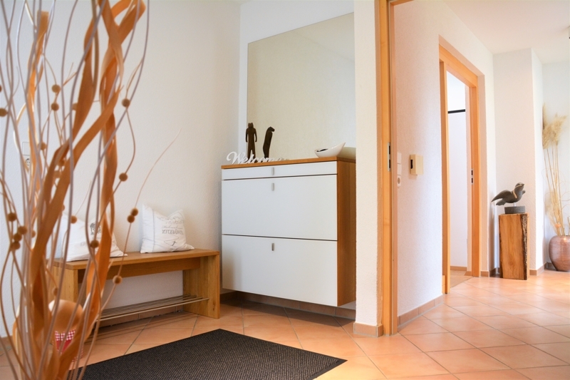 Dürfen wir Sie nun ins Erdgeschoss bitten? Der Eingangsbereich überzeugt mit einem großzügigen Flur, hier haben alle Familienmitglieder Platz.