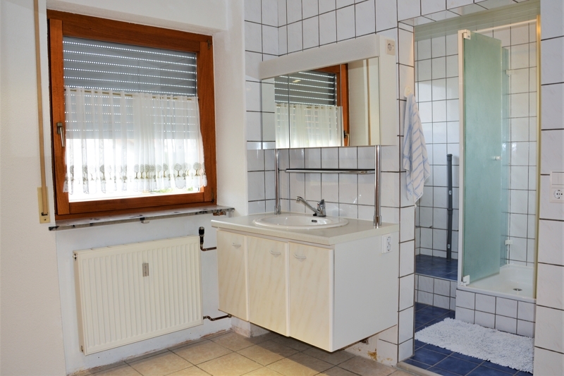 Das Badezimmer wird sie überraschen, denn dieses Duschparadies ist wohl einzigartig. Ausgestattet mit Dusche, Waschmaschinenstellplatz und Waschbecken bietet dieses Bad vor allem eins - jede Menge Platz.