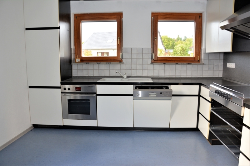 Die große Wohnküche, ausgestattet mit einer Einbauküche und dazu gehörenden elektrischen Geräten bietet Ihnen viel Arbeits- oder Ablagefläche.
