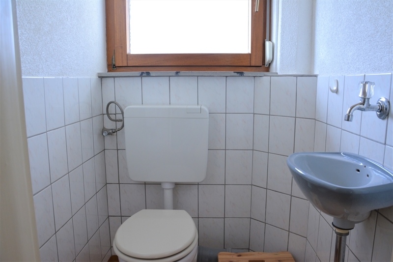 Ein separates WC befindet sich im Flur neben der Eingangstür.