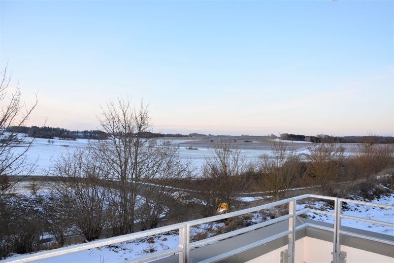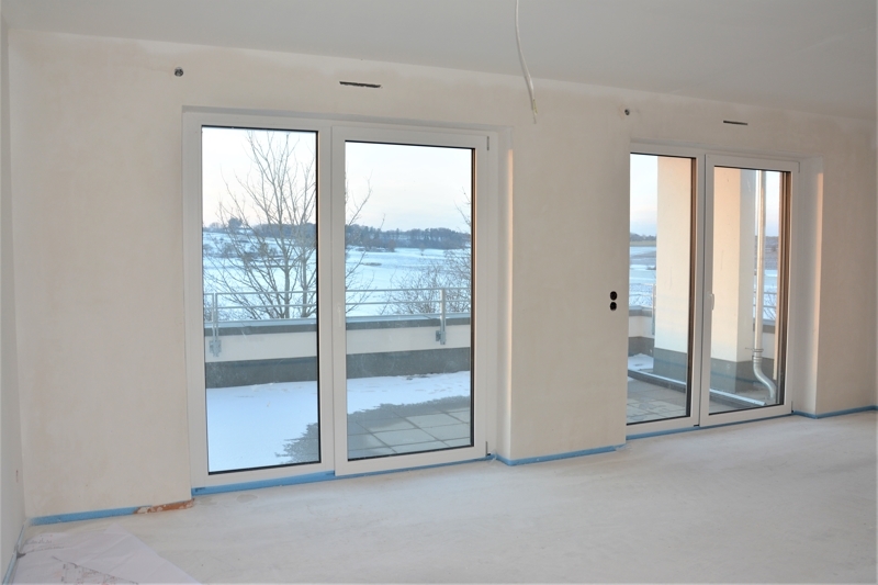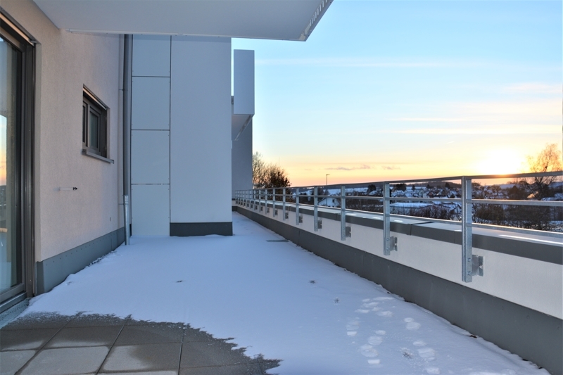 Die große Fensterfront mit zwei Balkontüren lässt viel Licht und Sonne in Wohn- und Essbereich herein. Hier können Sie die abendlichen Sonnenstunden genießen.