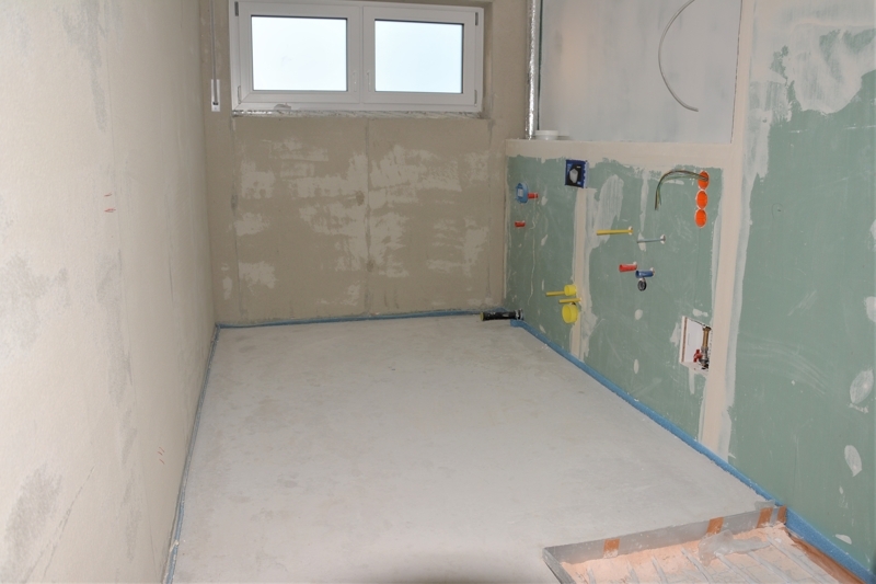 Das separate Gäste-WC und ein Abstellraum mit Waschmaschinen-Anschluss befinden sich gleich vorn im Flurbereich, dahinter eine praktische Garderobennische.