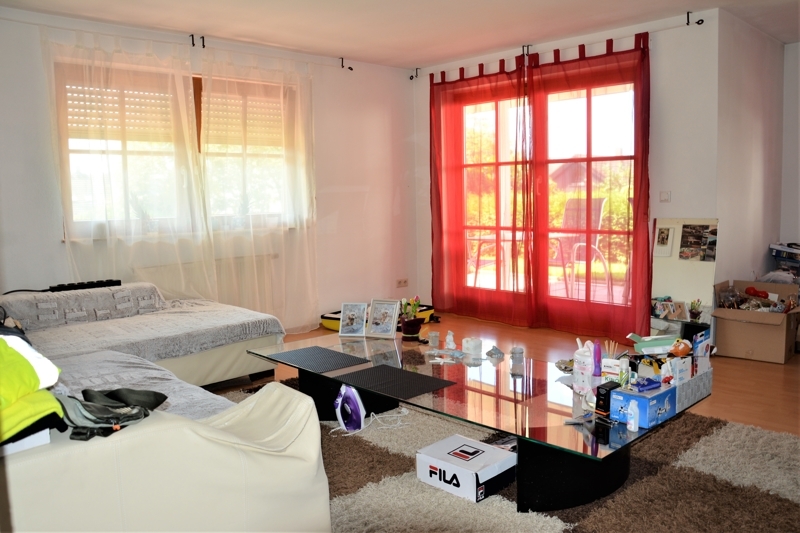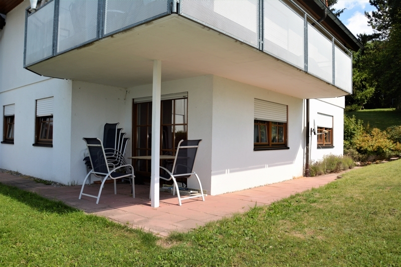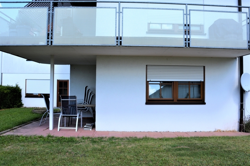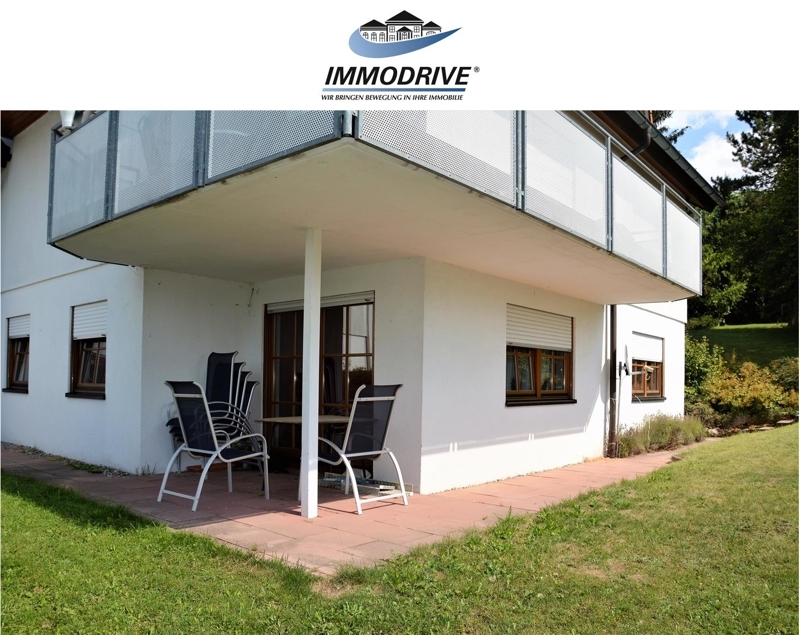 Vom Wohnzimmer aus können Sie nach Draußen auf die große, überdachte Terrasse und die Ruhe genießen. Diese erstreckt sich sowohl über die Süd- als auch die Westseite. Hier haben Sie Sonne satt bis in die Abendstunden.