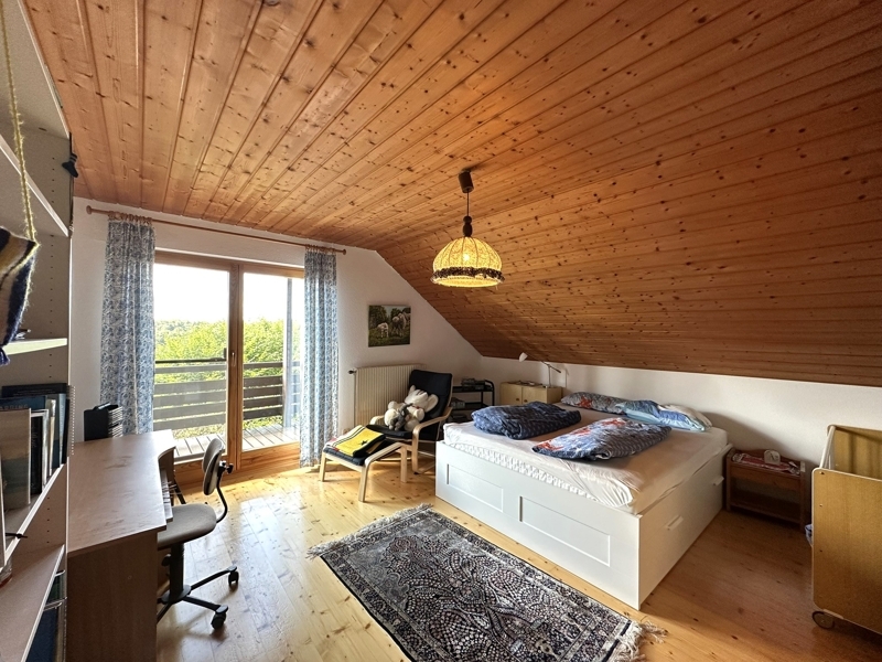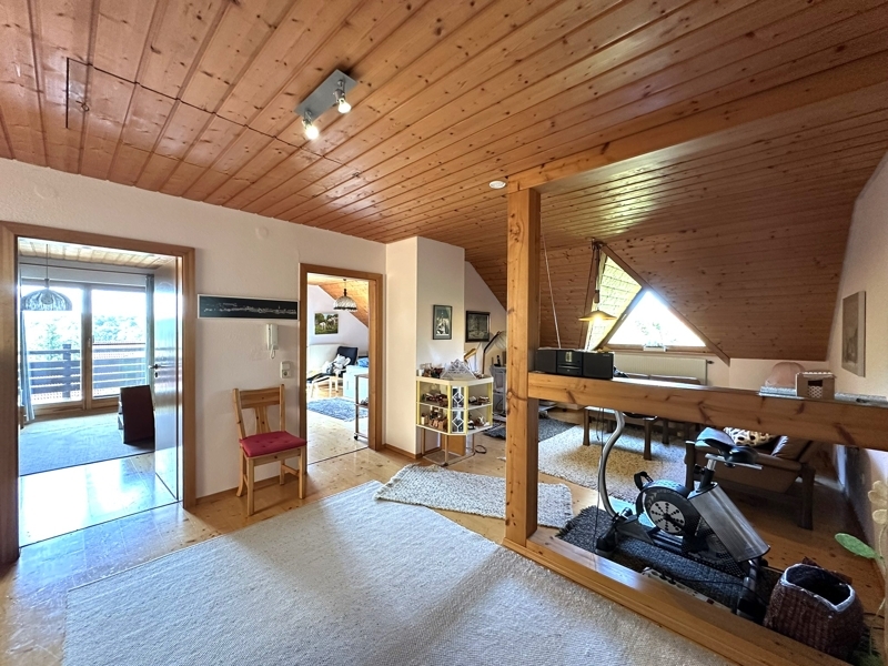 Im obersten Geschoss dieses gepflegten Wohnhauses erwartet Sie ein großzügig geschnittenes Dachgeschoss mit rund 87m² Wohnfläche, das durch seine helle Atmosphäre besticht. Diese Etage verfügt über zwei geräumige Kinderzimmer sowie ein weiteres Zimmer, das flexibel als Gästezimmer oder Büro genutzt werden kann. Besonders hervorzuheben ist der direkte Zugang von beiden Schlafzimmern zum Balkon – ein privater Rückzugsort mit Blick ins Grüne. Eine großzügige zentrale Wohndiele verbindet alle Räume und schafft ein einladendes Wohngefühl.