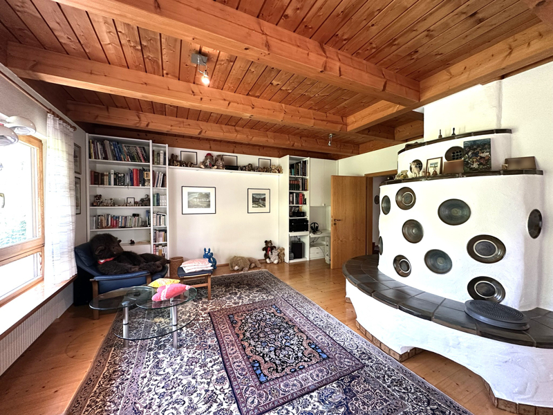 Das Erdgeschoss dieses Einfamilienhauses beeindruckt mit einem warmen, einladenden Wohnambiente. Auf rund 117m² Wohnfläche entfaltet sich ein echtes Raumwunder mit hohen Decken von 2,79m², viel Licht und einer klaren Raumstruktur. Das Wohnzimmer bildet das Herzstück des Hauses – großzügig gestaltet, mit einem imposanten Kachelofen, der eine behagliche Wärme ausstrahlt.