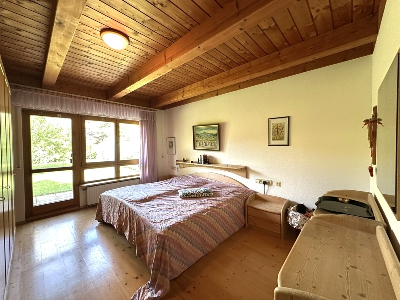 Besonders hervorzuheben ist der direkte Zugang zu den Außenbereichen: Sowohl vom Wohnzimmer, dem Esszimmer als auch einem der Schlafzimmer gelangen Sie ebenerdig in den Garten, der trotz Hanglage ebenerdig und bequem erreichbar ist.