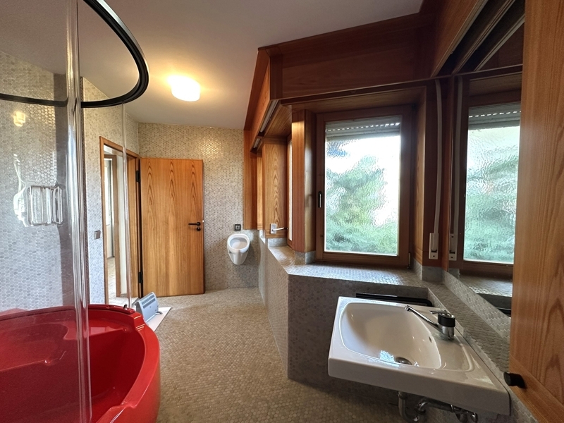 Die Schieferböden, großzügige Fensterflächen und angenehme Raumhöhen prägen das Wohngefühl. Die Splitlevel-Bauweise schafft interessante Ebenen und eine offene, dennoch klar gegliederte Wohnatmosphäre.