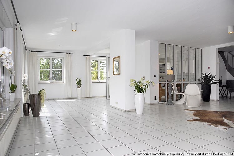 Durch den großzügigen Empfangsbereich begeben Sie sich in die Wohnräume des Erdgeschosses, welches gemeinsam mit dem Dachgeschoss mit 440 m² Wohlfühlfläche aufwartet. Die großzügig offenen Räume im Erdgeschoss bieten durch die vielen Glasflächen viel Licht zum Leben. Neben Küche, Wohn- und Essbereich erwarten Sie hier noch das Masterbad, ein Wintergarten, eine Terrasse, Diele und ein Büro- bzw. Arbeitsraum.