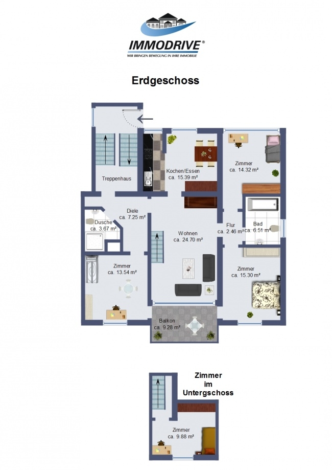 Die Wohnung verfügt über eine eigene Waschküche die unter dem Hauptbad liegt und über einen Wäscheabwurfschacht verfügt.