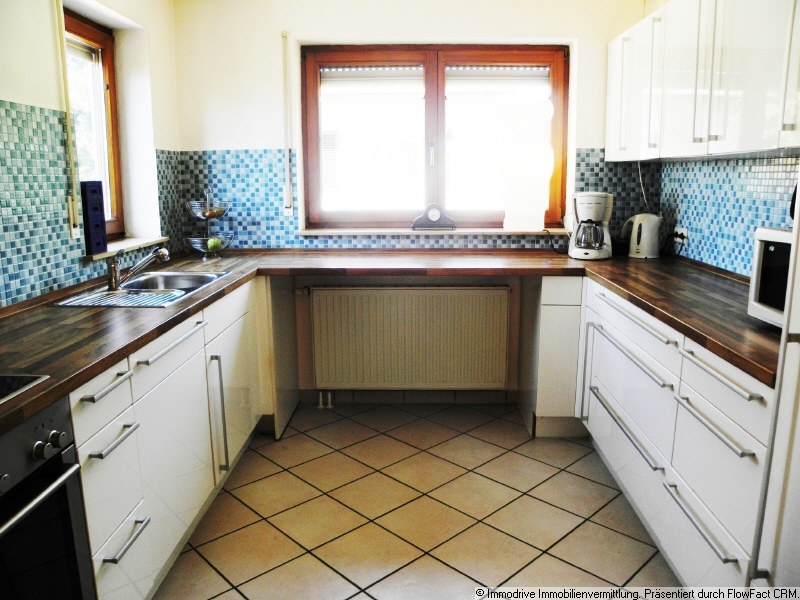 Die Einbauküche ist nicht im Preis enthalten. Die Küche gehört den aktuellen Mietern. Die Küche kann jedoch für einen Preis von 3.500 Euro hinzugekauft werden. | Gas-Zentralheizung | Bad: Wanne - Dusche - Doppelwaschbecken - WC | Süd-Terrasse | Großraumgarage | Stellplatz