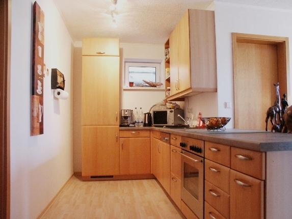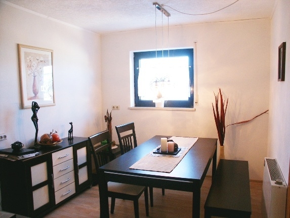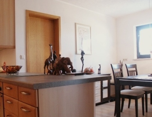 Die Küchentheke ist zum Eßzimmer hin offen gestaltet. Vom angrenzenden Wohnzimmer aus haben Sie Zugang zur Terrasse mit Gartenbereich.