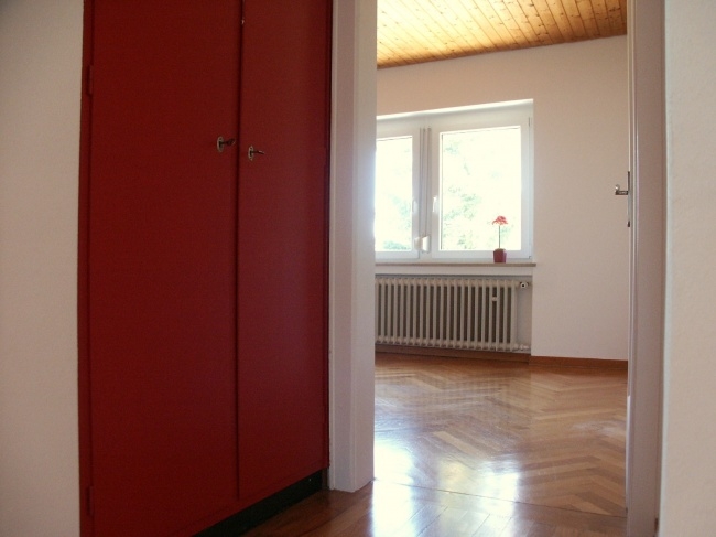 Von der große Eingangsdiele aus haben Sie Zugang zu den Zimmern. Die Wohnräume sind hell und mit Holzparkett ausgestattet. Vom Wohnzimmer haben Sie Zugang zum Süd-Balkon, mit Blick auf den Garten.