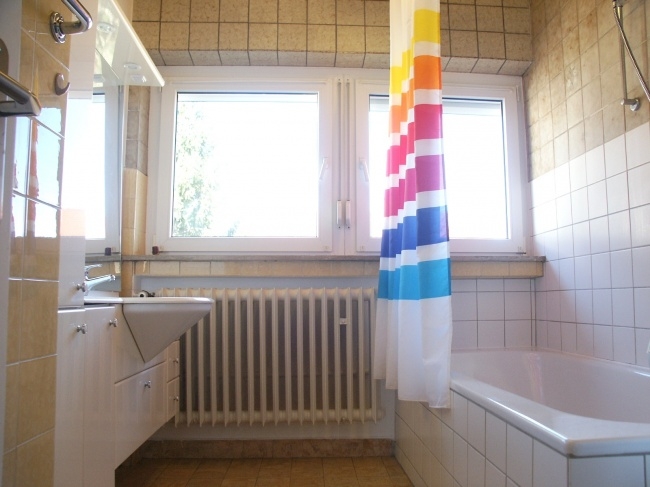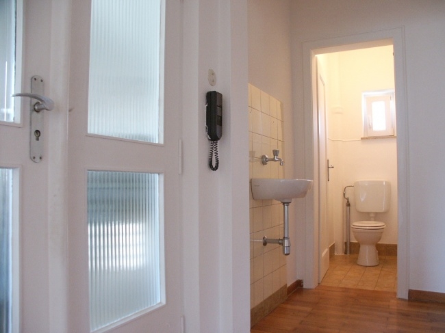 Das Bad ist mit Duschwanne und Waschbecken ausgestattet, WC extra. Der Waschmaschinensanschluß ist wahlweise auch im UG. möglich.