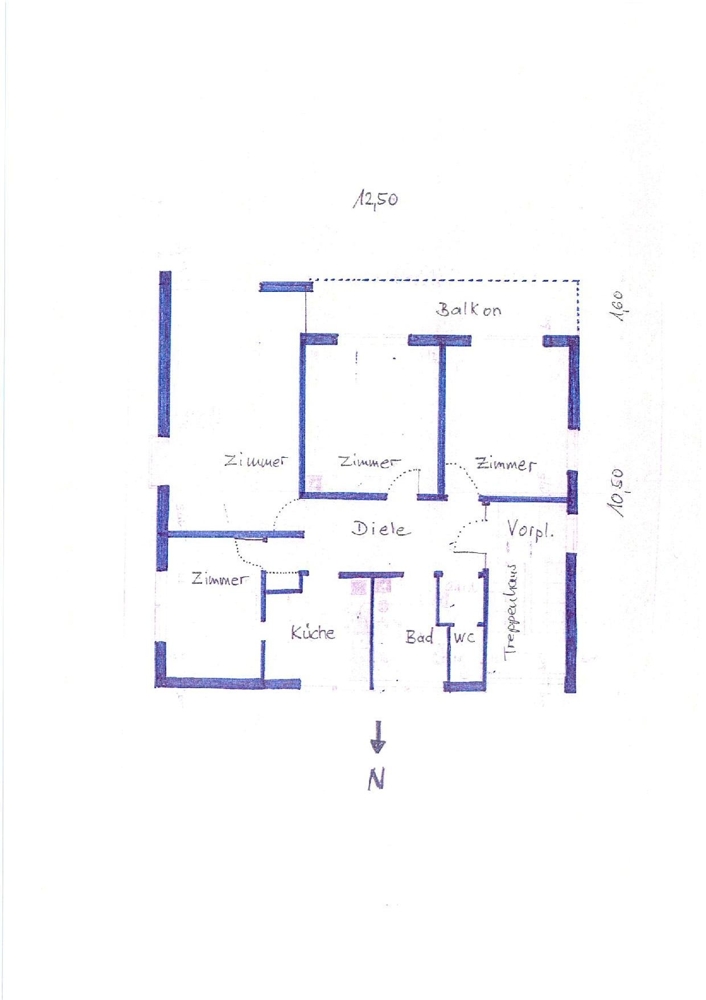 Diese 4 Zi.- Wohnung befindet sich im 1. OG. des Hauses.
