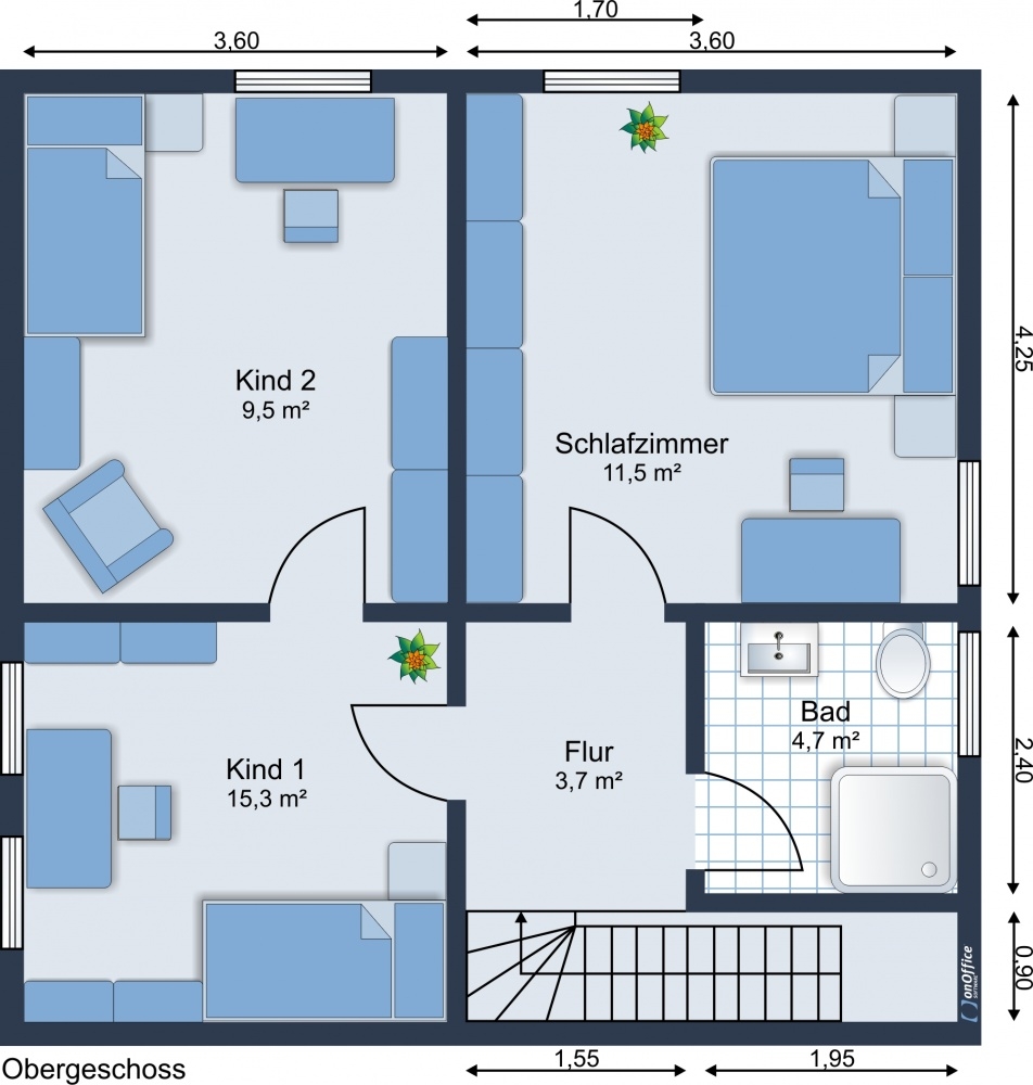 Ein gut durchdachtes Raumkonzept mit, überraschend für dieses Baujahr, großzügigen Zimmern, bietet der vierköpfigen Familie genügend Platz um den Wohwünschen aller Familienmitglieder gerecht zu werden.