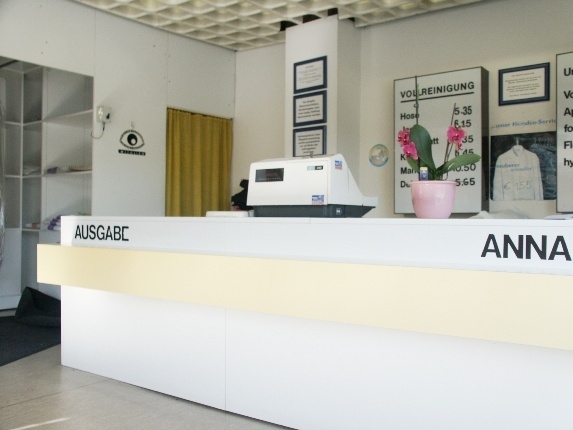 Für den derzeitigen Geschäftsbetrieb als Reinigung ist ein Kleiderumlauf und eine Ladentheke vorhanden.