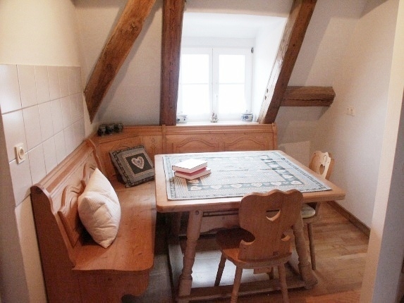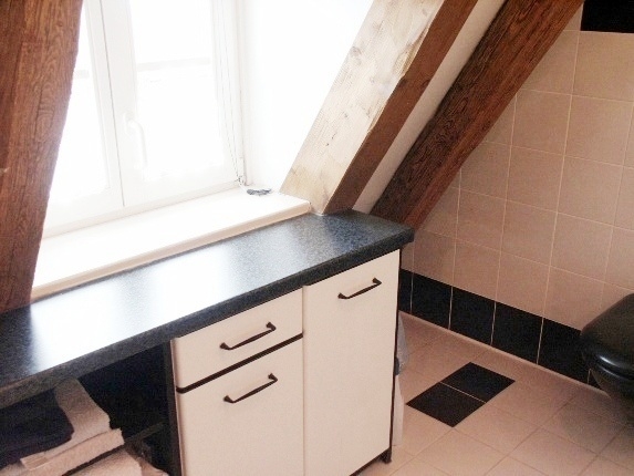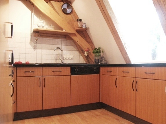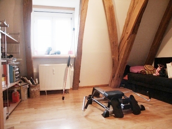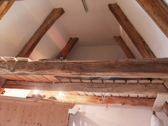 Die handwerkliche Kunst aus früheren Zeiten ist durch die Balkenkonstruktion gegenwärtig. Über eine schön geschwungene, neue Treppe geht es in die nächste Etage. Ein heller Arbeitsplatz bietet Ruhe und Konzentration, oder Platz für Fitness ? Daneben läd Sie das Schlafzimmer mit Ankleideabtrennung und Stauraum zum Träumen ein. Und - um wieder frisch in den Tag zu starten, steht Ihnen ein modernes Tageslichtbad mit Dusche, WC und Waschbecken zur Verfügung.