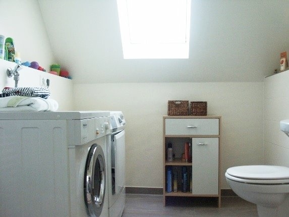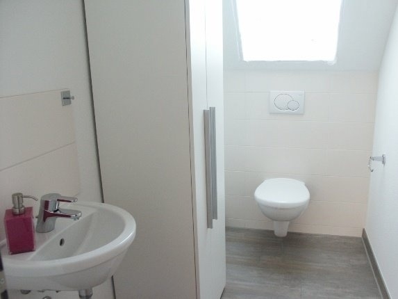 Im 2. OG haben Sie Zutritt zu dieser individuell gestalteten Wohnung. An den offenen Wohn/Essbereich schließt sich ein geschützter Balkon an. Die Küche ist komplett ausgestattet, so wird Ihr Umzug ein Kinderspiel und Sie fühlen sich gleich Zuhause. Auf dieser Ebene befindet sich das ruhige Schlafzimmer, daneben das Badezimmer. Im Flur noch ein Gäste WC.