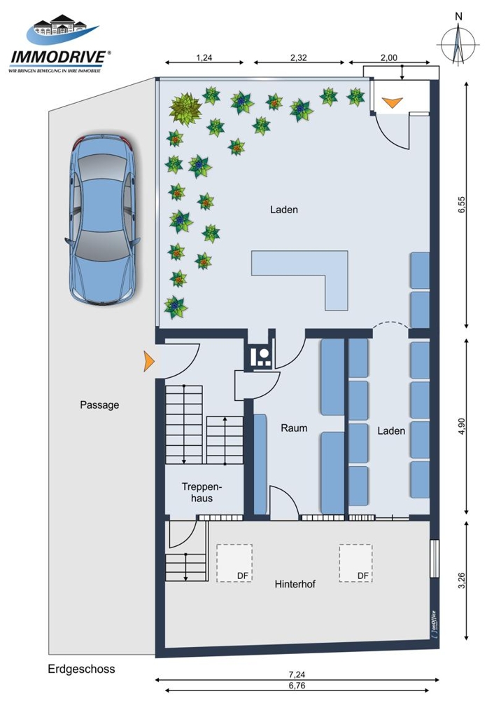EG: Ladeneinheit 65,23 m² + Nebenräume im UG 61,78 m²