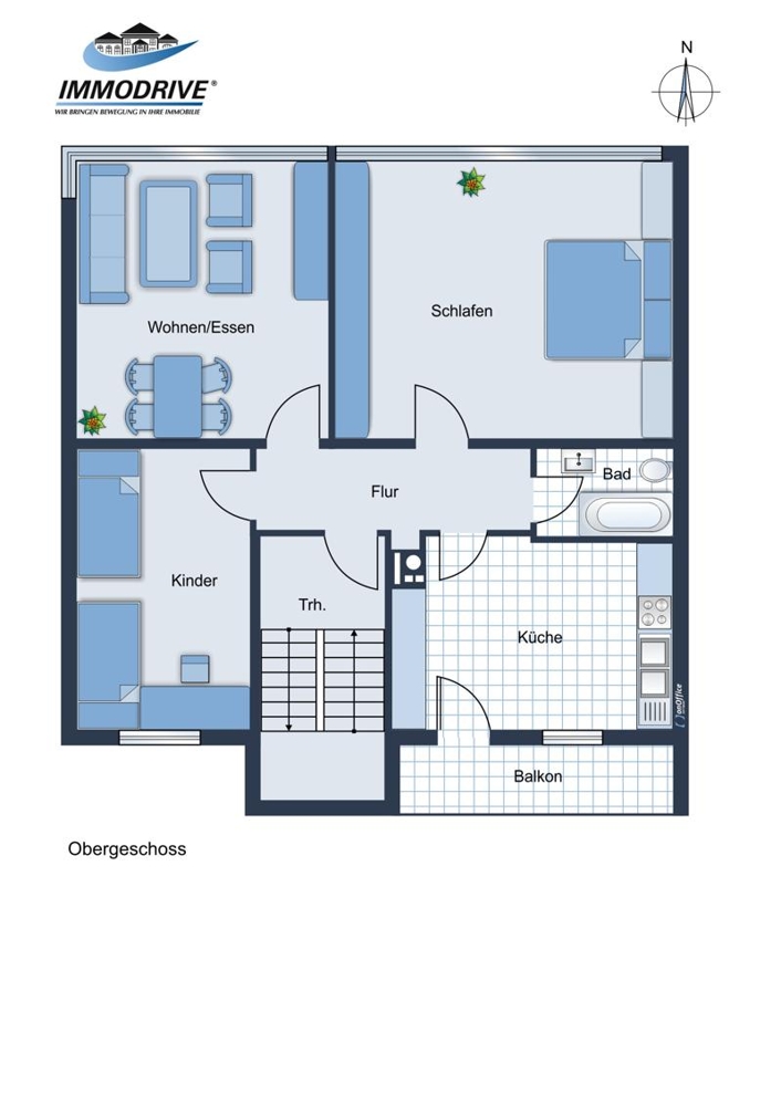 Die beiden 3,5 Zimmer Wohnungen im 1. und 2. Obergeschoss mit Balkon haben einen identischen Grundriss mit einer klassischen Aufteilung.
