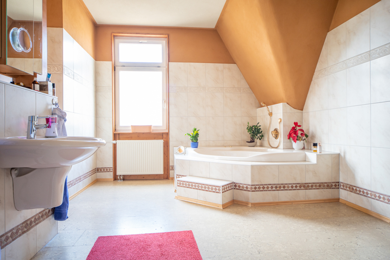 Das Gebäude besticht durch seine Größe mit 2 Vollgeschossen und 2-3 geschossigem steilen Krüppelwalmdach. Zudem ist die Immobilie voll unterkellert.