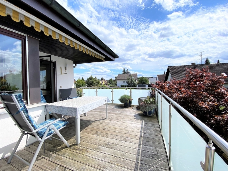 Der sonnige Balkon lädt ein zum Faulenzen, Sonnen und Lesen oder ganz einfach zum Tagträumen. Frühstücken geht natürlich auch. Die Markise ist ein willkommener Schattenspender an besonders heißen Tagen.