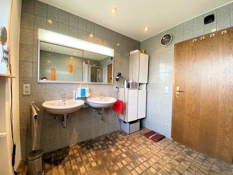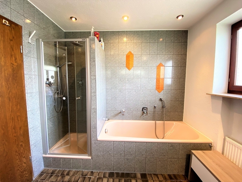 - Tageslichtbad mit Badewanne, Dusche und Doppelwaschbecken im EG