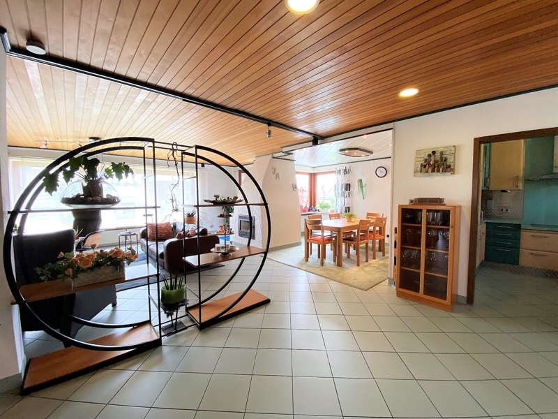 Lebensmittelpunkt bildet hierbei das offene Wohn-Ess-Zimmer. Es ist lichtdurchflutet, bietet Ihnen einen Zugang zum Balkon und der Kaminofen spendet an kalten Tagen behagliche Wärme.