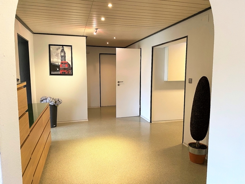 Im Erdgeschoss wohnen Sie sehr komfortabel auf einer Ebene. Die drei Zimmer verteilen sich auf 98 m² und laden zum Wohnen ein.