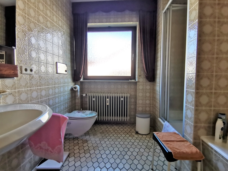 - Tageslichtbad mit Dusche, Waschbecken, WC und Badewanne im EG