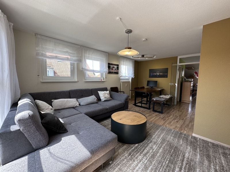 Das Herzstück dieser 4,5 Zimmer Maisonette Wohnung bildet das zentrale und helle Wohnzimmer mit Zugang zum Süd-Balkon.