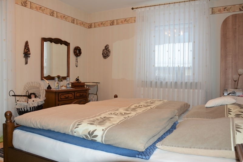 Das große, ebenfalls vom Flur abgehende Schlafzimmer ist in Richtung Terrasse / Garten ausgerichtet.