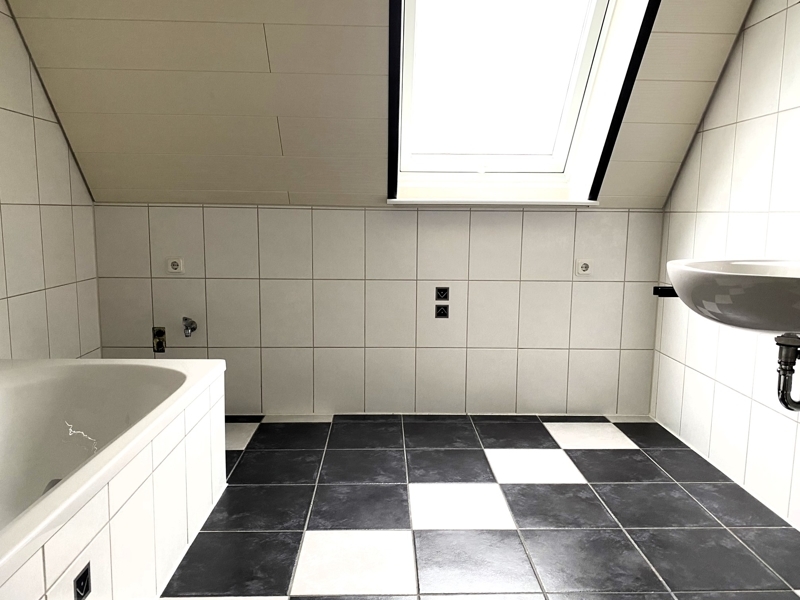 Das geräumige Tageslichtbadezimmer ist sowohl mit einer Dusche, als auch einer Badewanne ausgestattet. Gleich nebenan befindet sich das separate WC.