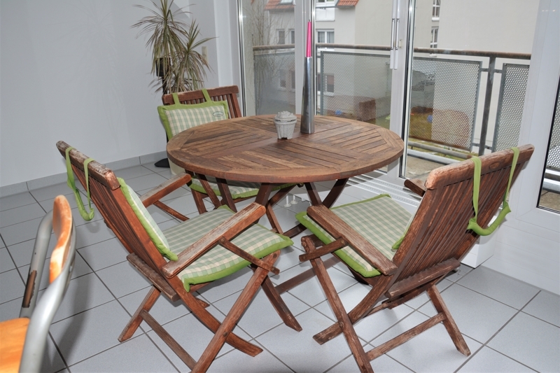 Das Herzstück der Wohnung befindet sich die Treppe hinauf. Ein helles Wohnzimmer mit angrenzendem Balkon, der komplett überdacht ist. Auf der anderen Seite befindet sich das Schlafzimmer. Dazwischen das innen liegende Badezimmer, welches sowohl mit einer Badewanne als auch einer Dusche ausgestattet ist.